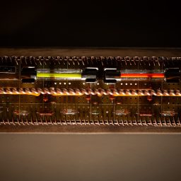 Яркость букв регулируется ШИМ-контроллером для двигателей, и ограничены обычными резисторами подобранными чтобы ограничить по разному ток, ибо количество мелких диодных кристаллов разные в разных буквах и яркость получалась разная. Буквы влючаются отдельно от индикатора с цветными светодиодами на фоне.